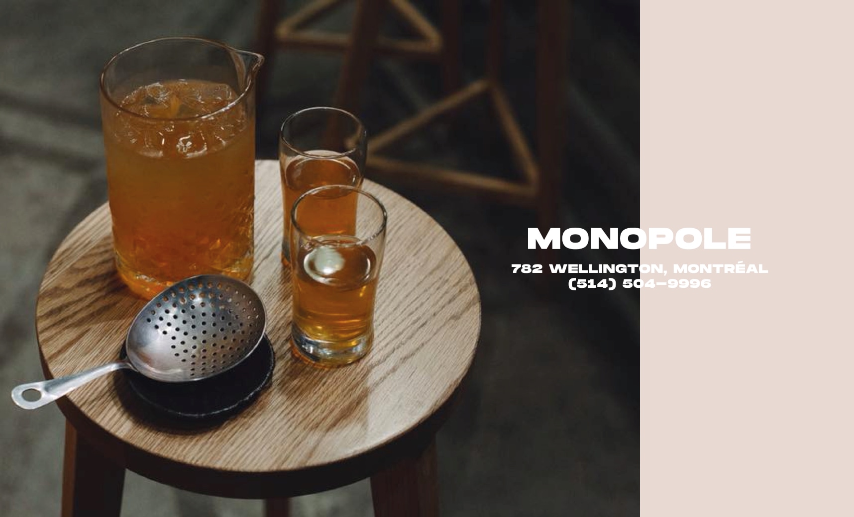Monopole is a café & buvette located in Montreal’s Old Port, a comforting oasis in a particularly business-centric part of this neighborhood. One year in their existence, they tapped me in to create a brand that would play on this contrasted monolithic homey feel.