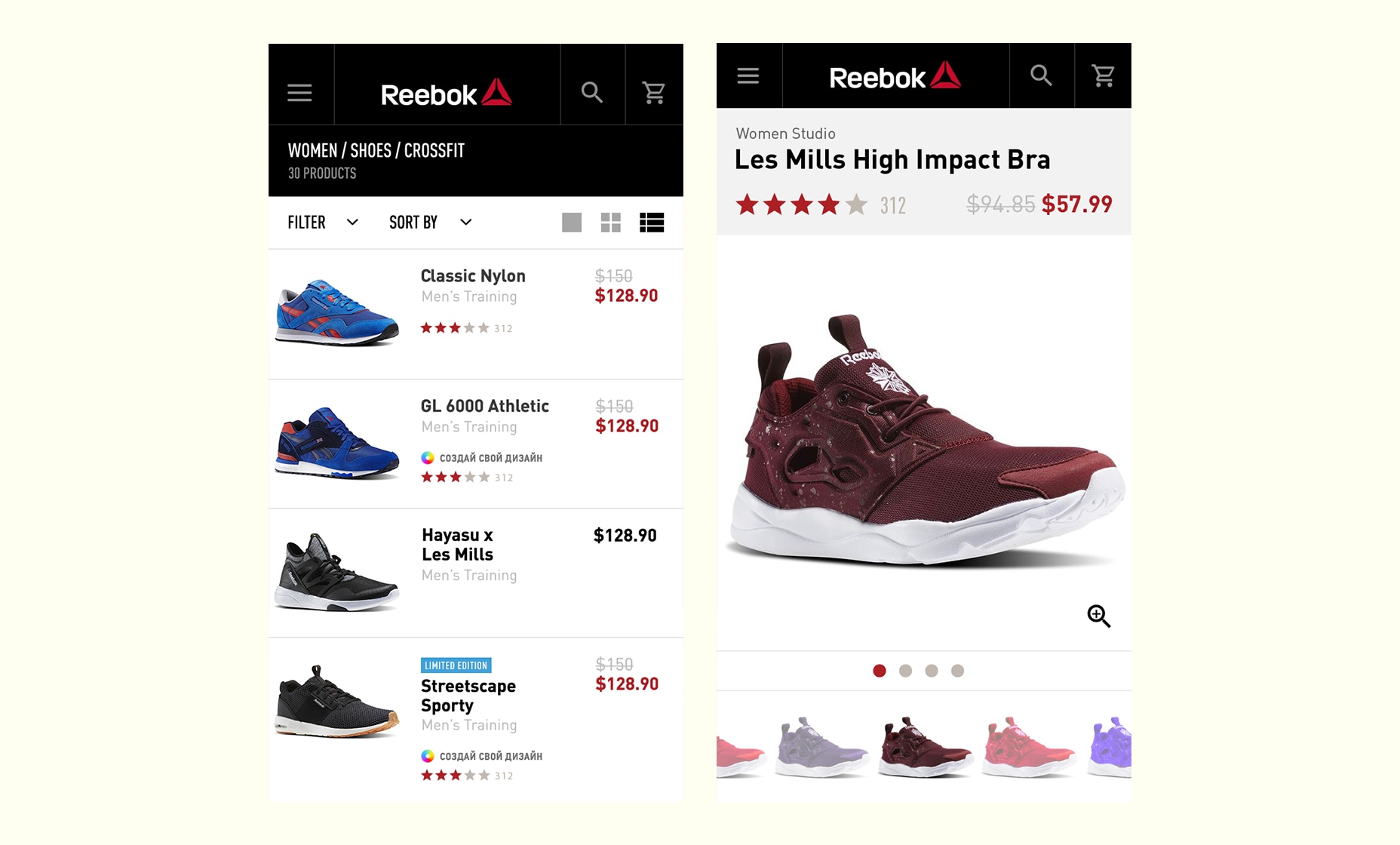 During summer 2016, Nurun was tasked by Adidas to design Reebok.com’s mobile experience and to inspire refinements for their whole web ecosystem. Over the period of four months, we lead the effort in close collaboration with Adidas’ Amsterdam office, providing UX, UI and a refinement of their existing art direction.